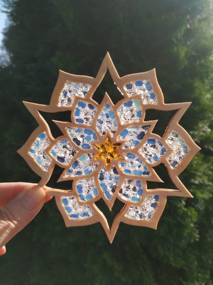 Velikost: 13 cm. Materiál: Březová překližka. Síla: 3 mm. Výplň: Opalit, diamantový Křišťál, Jantar. Doplněné skleněnými microkuličkami. Vhodné do...