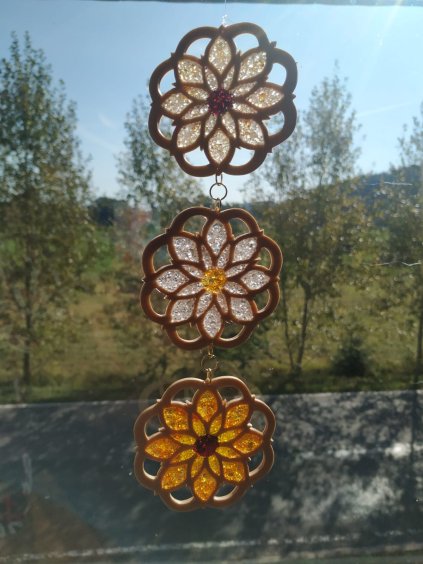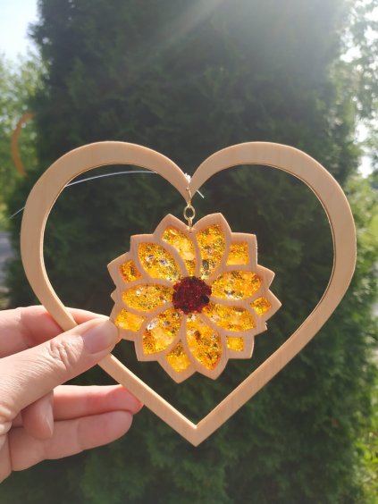Velikost: 20 cm. Materiál: Březová překližka. Síla: 3 mm. Výplň: Jantar, Citrín, diamantový Křišťál, Karneol, Indický Granát. Doplněné skleněnými...