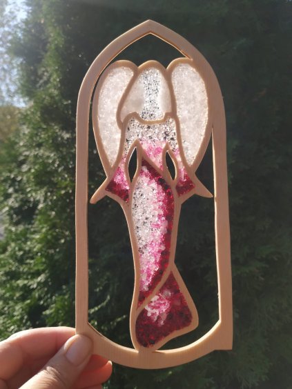 Délka: 30 cm. Materiál: Březová překližka. Síla: 3 mm. Výplň: Jantar, diamantový Křišťál, Růženín. Doplněné skleněnými microkuličkami. Vhodné do...