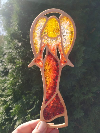 Velikost: 23 cm. Materiál: Březová překližka. Síla: 3 mm. Výplň: Jantar, Citrín, diamantový Křišťál. Doplněné skleněnými microkuličkami. Vhodné do...