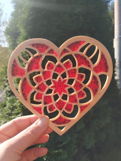 Velikost: 16 cm. Materiál: Březová překližka. Síla: 3 mm. Výplň: Indický Granát, červené skleněné kuličky. Doplněné skleněnými microkuličkami. Vhodné do...
