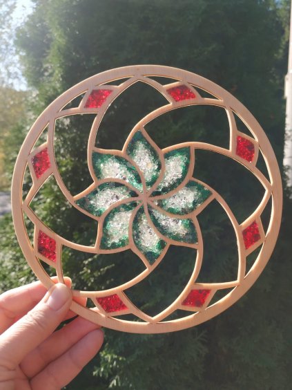 Velikost: 16 cm. Materiál: Březová překližka. Síla: 3 mm. Výplň: Granát, Jantar, diamantový Křišťál. Doplněné skleněnými microkuličkami. Vhodné do...