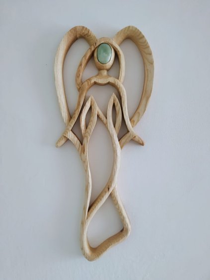Výška: 55 cm. Materiál: Jasan, Jadeit. Síla: 3 cm. Povrch: Olej s voskem. Vzadu otvor na zavěšení.