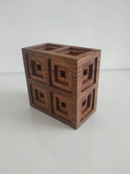 Velikost: 13,5 x 13,5 x 7,5 cm. Materiál: Dub. Povrch: Olej s voskem. 16 do středu zastředěných pyramid, vhodné jako harmonizér do prostoru k odstranění...