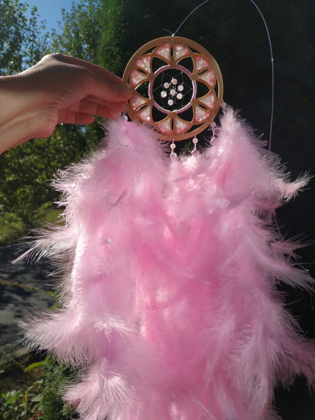 - Výplň: Růženín, Růženínové kuličky, peří Marabu.