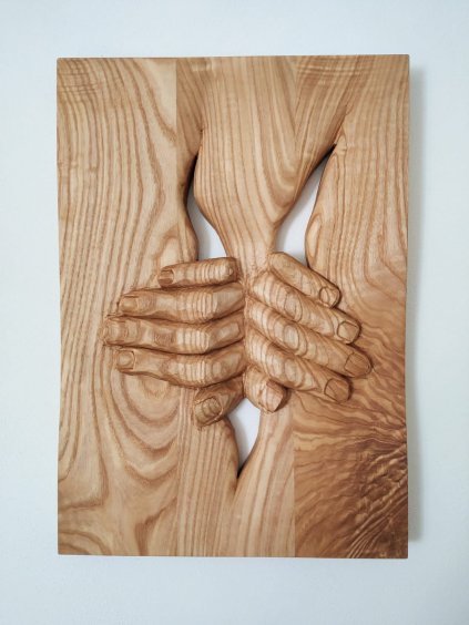 Výška: 55 cm. Materiál: Jasan, Jadeit. Síla: 3 cm. Povrch: Olej s voskem. Vzadu otvor na zavěšení.