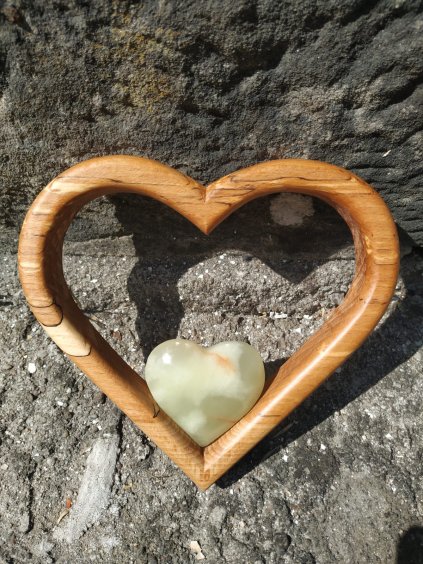 Velikost: 18 cm. Materiál: Jasan. Síla: 3 cm. Kámen: Pákistánský Onyx. Povrch: Olej s voskem. Barva kamene se může lišit dle aktuálních zásob.Srdíčko je...